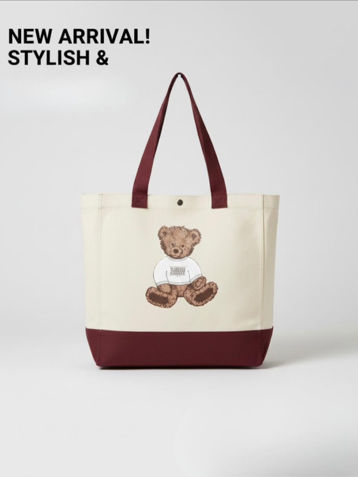 Marithe + Francois girbaud bear graphic tote bag - canvas & denim series