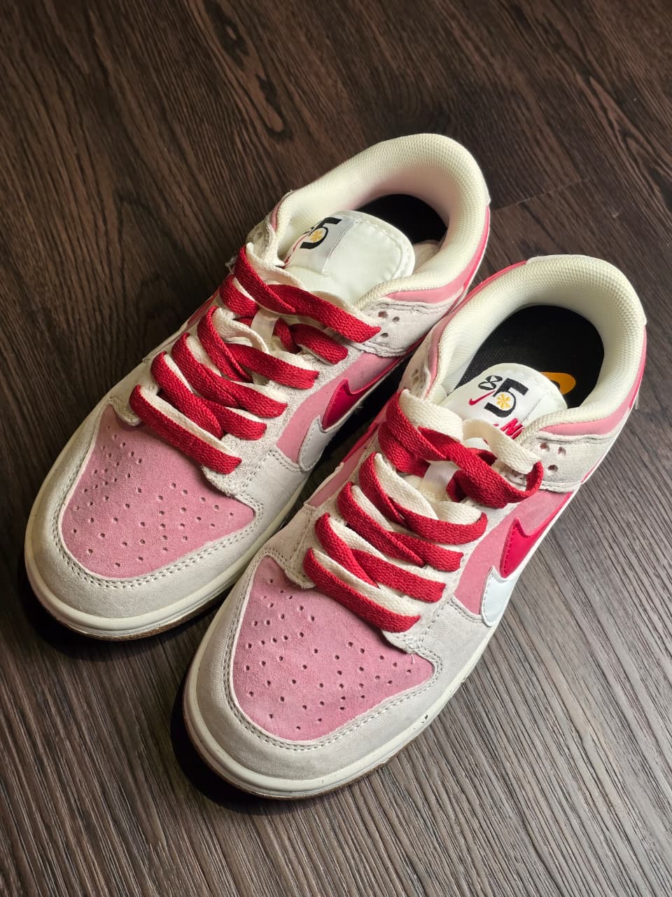 Sepatu sneakers dunk low retro 85 pink foam - red white double swoosh